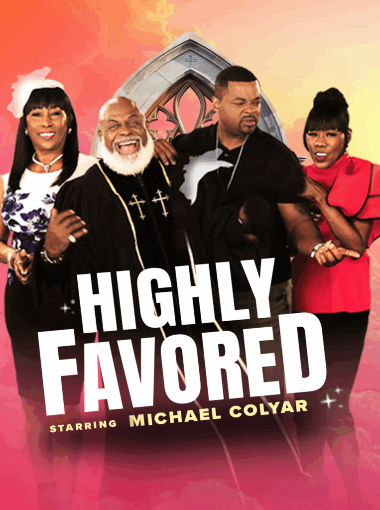 Highly Favored follows Pastor Michael Crawley (Colyar), a charismatic yet old-fashioned preacher navigating modern challenges in his Inglewood church while balancing family, faith, and community.